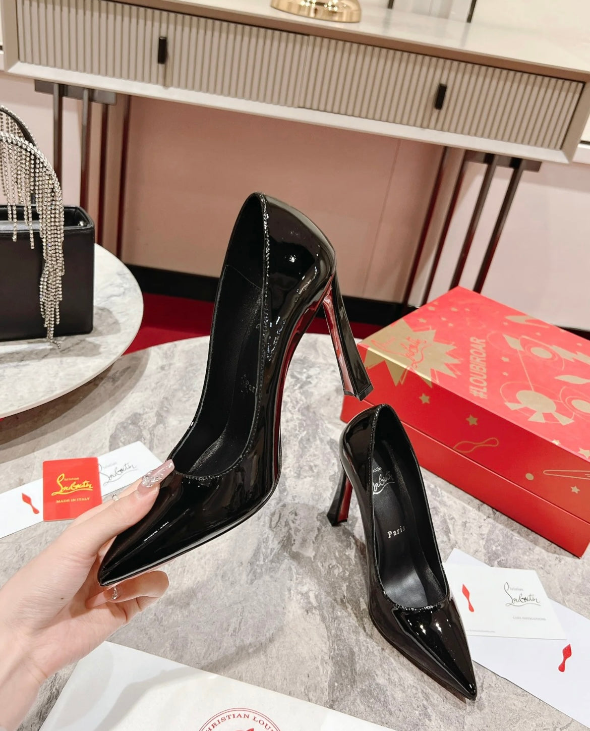 Elegant Pointed-Toe Pumps in Black with Red Sole
